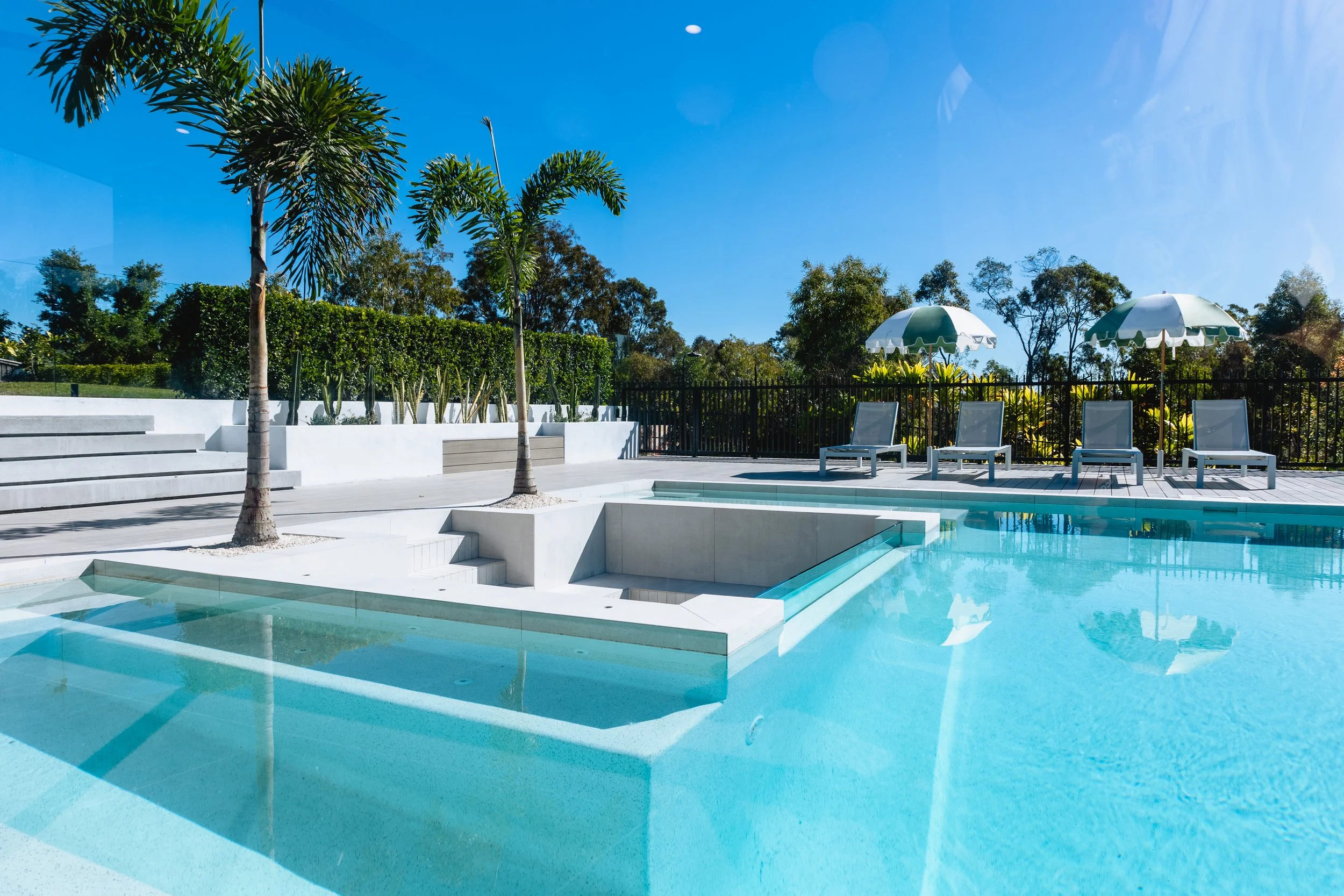 Whether it’s the pool with it’s glass viewing window and the expansive deck, the firepit and alfresco space with hand crafted concrete and timber elements, or the pool house with it’s sheer curtains concealing an intimate lounge space, elegant bathroom and fully stocked bar.